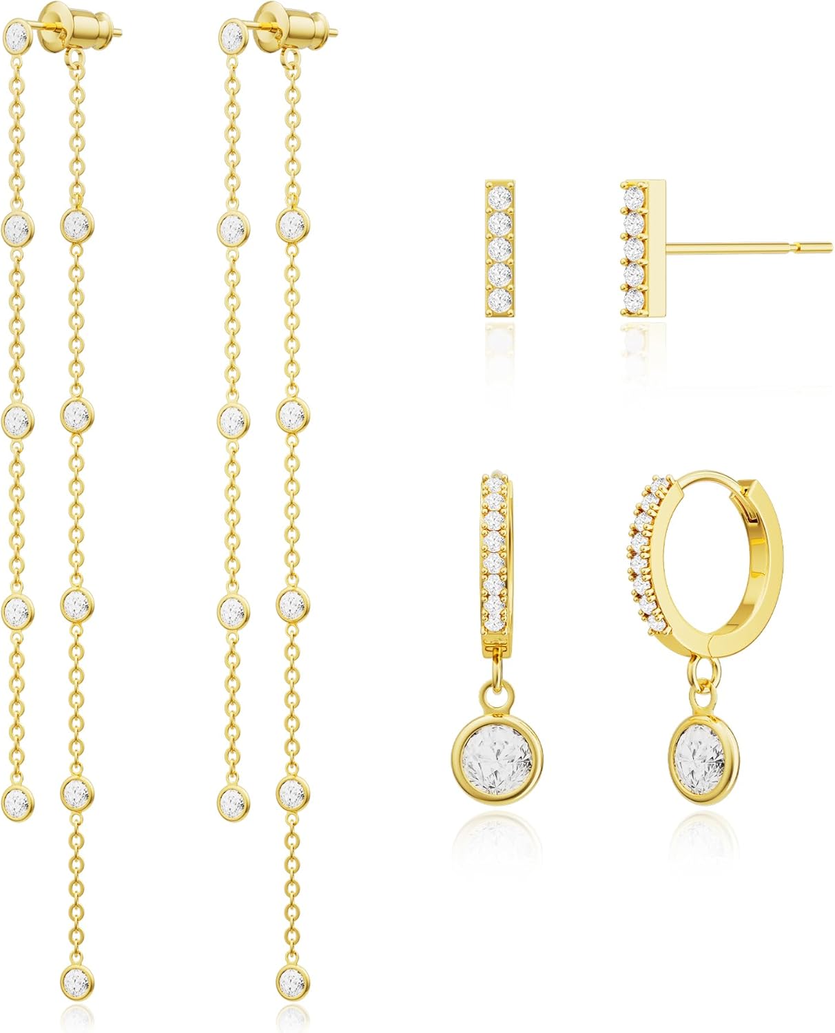 Moodear Dangle Earrings for Women Trendy Chain Earrings 14K Gold Plated Dangle Hoop Earring Stacks Set Cubic Zirconia Stud Drop Dangling Hypoallergenic Earrings for Women Jewelry Gifts