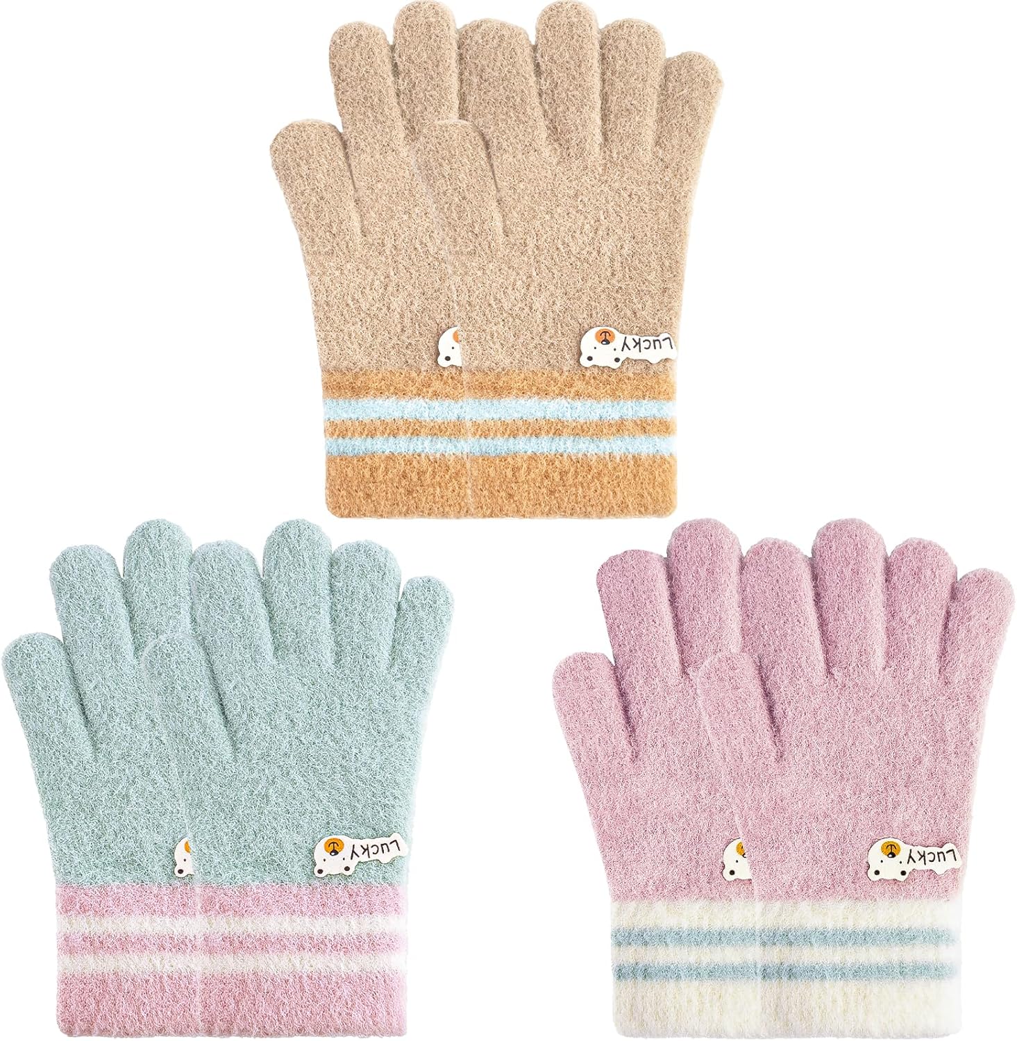 MIG4U Kids Winter Gloves 3 Pairs Warm Fuzzy Gloves, Soft Thermal Mittens for Cold Weather, Unisex Thick Cozy Gloves