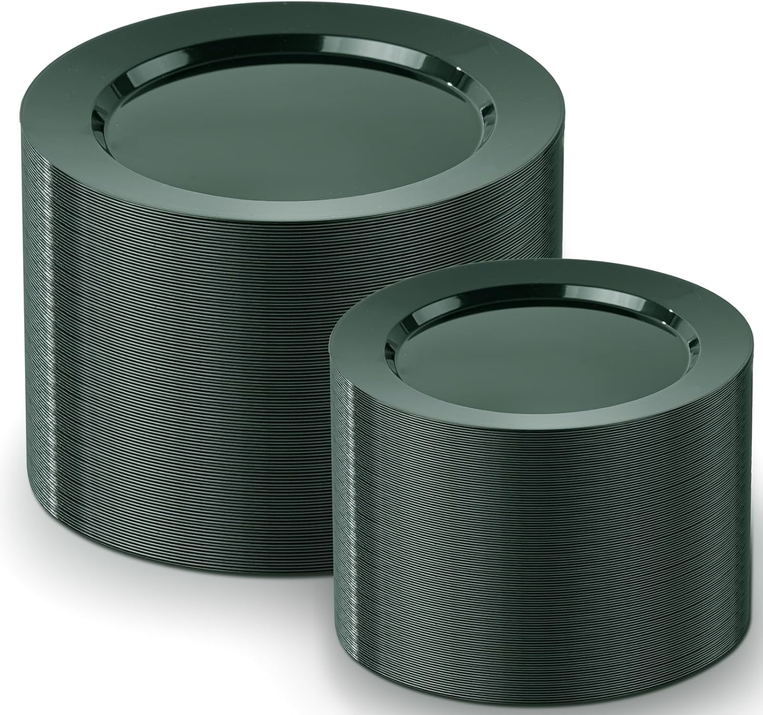 - VALUE SET: Our dark green plates set includes 100PCS 10” dinner plates and 100PCS 7” dessert plates are perfect for large gatherings,the green party plates set can serve for 100 guests