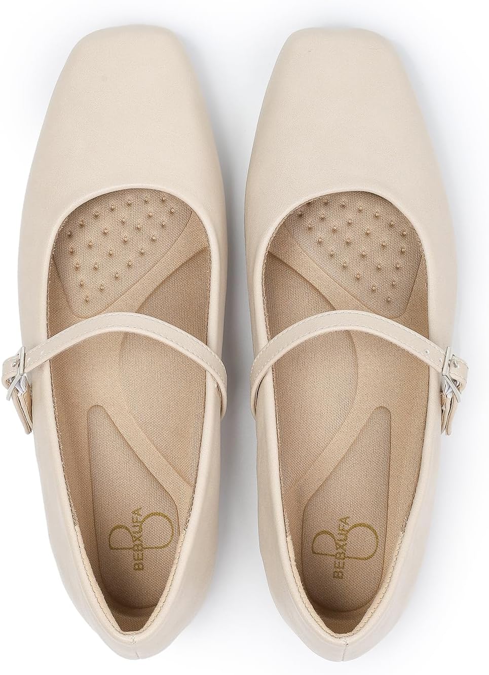 Women's Square Toe Mary Jane Ballet Flats Shoes with Adjustable Strap, Slip On Comfortable Work Flats, Soft Leather Dressy Shoes