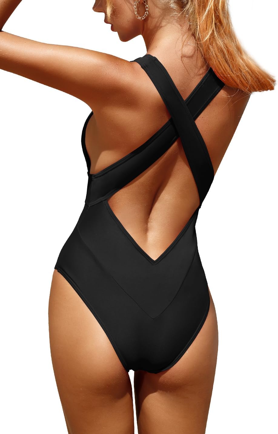 Upopby Women's Sexy High Cut One Piece Swimsuit for Women Cheeky Bathing Suits Deep V Neck Crisscross Backless Swimwear
