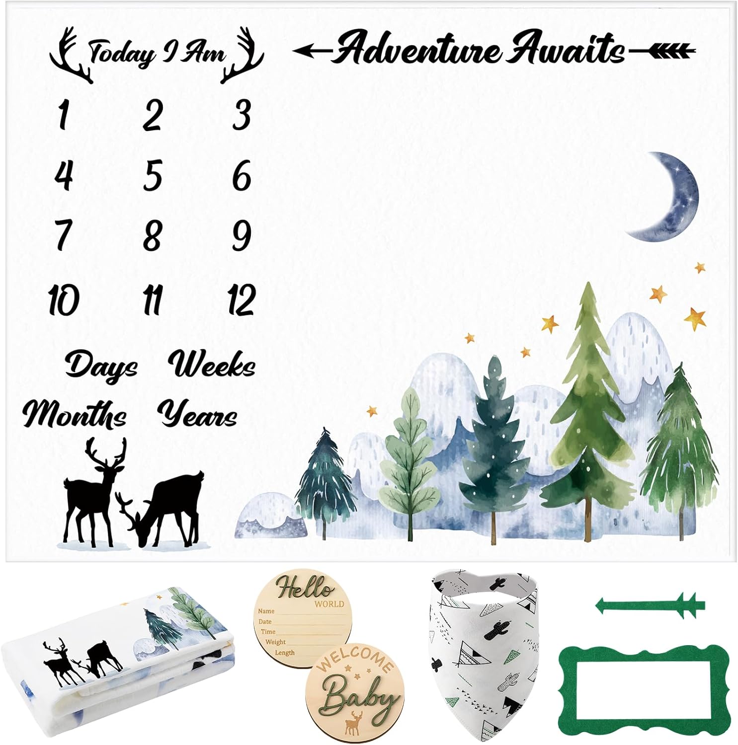 - Cute Design: Baby monthly milestone blanket features a beautiful landscape, and graceful deer, all beckoning your little one to embark on a adventure. Cute and vivid design make our baby blanket suitable for photo-shoot dress-up for social media shares
