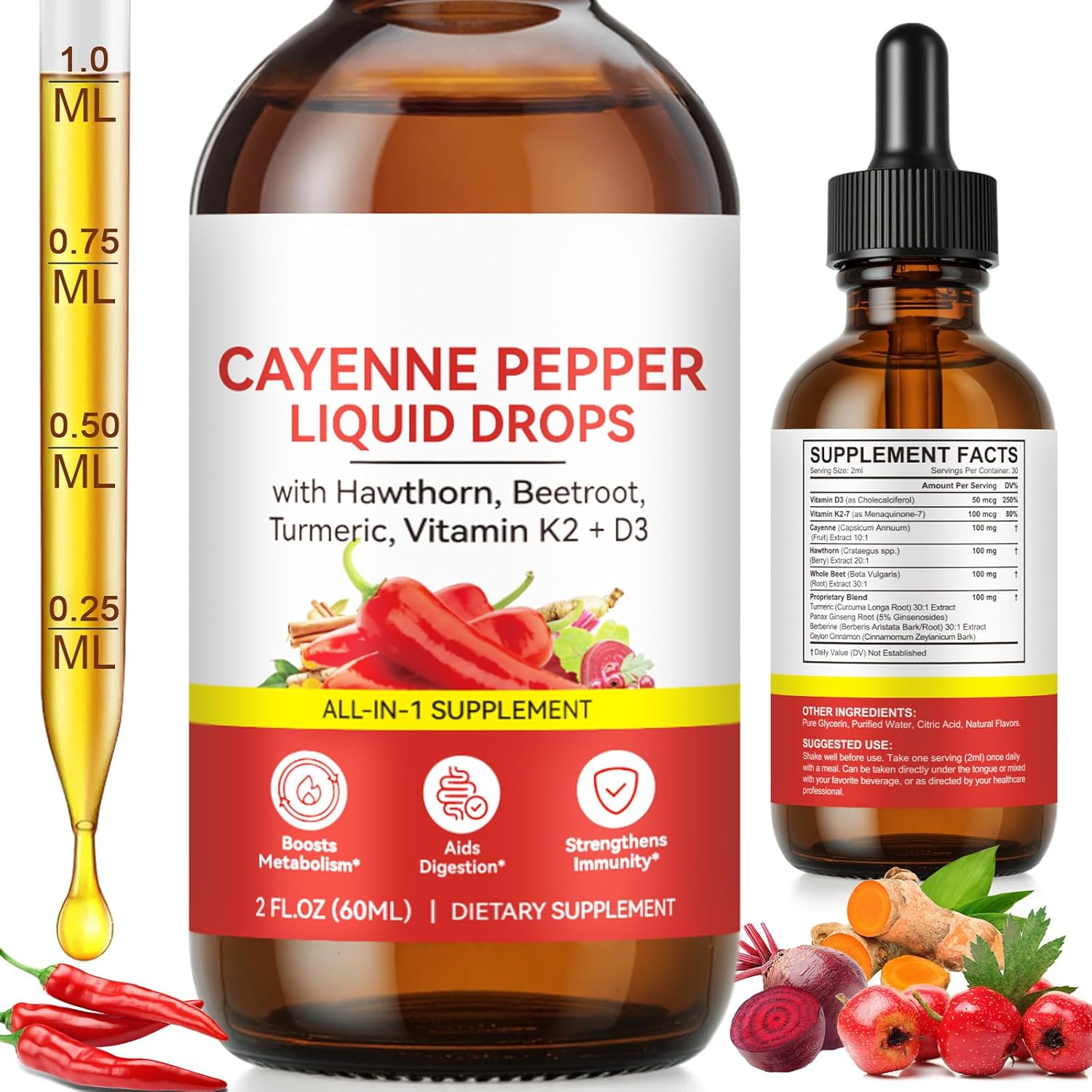 - Elevate your health routine with our potent Cayenne Pepper Drops