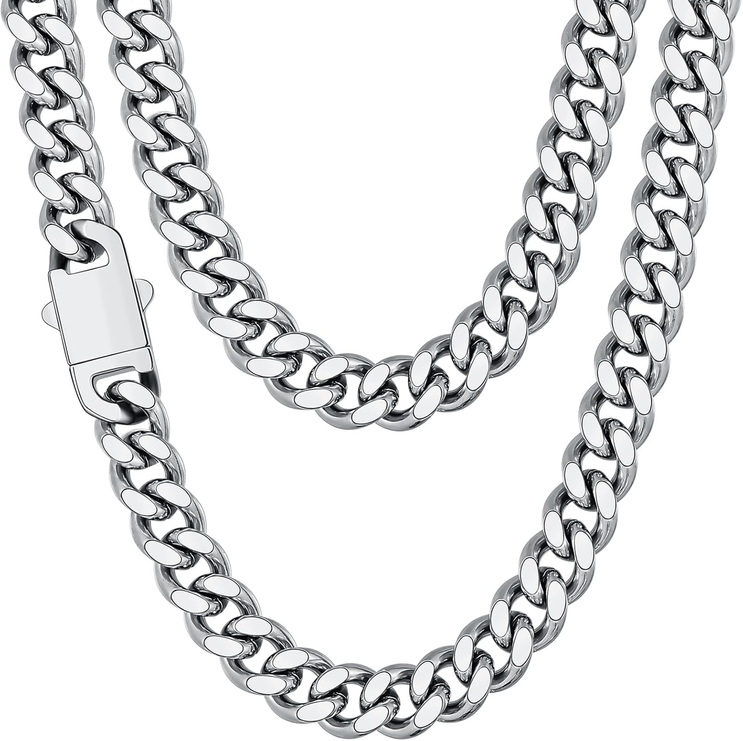Fiusem Silver Tone Chain Necklace for Men, 9mm 14K Silver Plated Stainless Steel Cuban Link Chain Necklace, Men's Chains 22 Inch