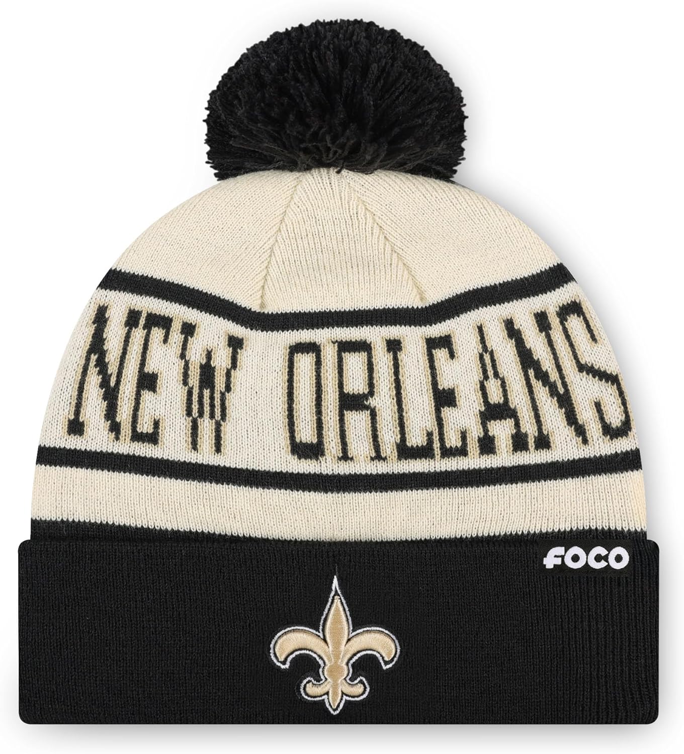 FOCO NFL Primary Team Logo Heritage Stripe Pom Beanie Hat