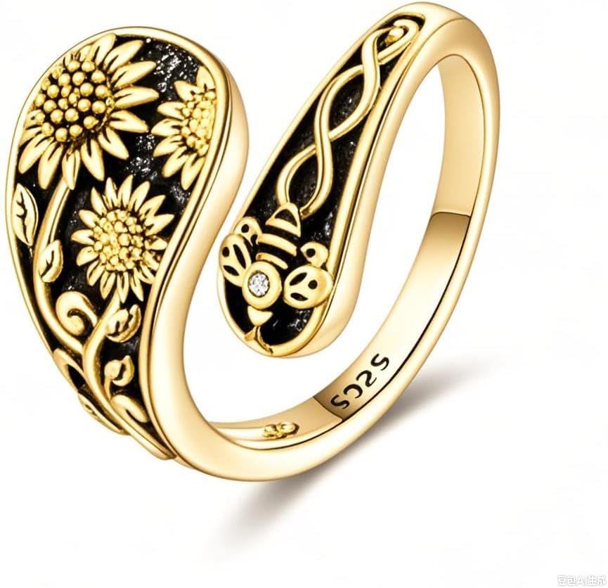 Gold Sunflower Rings for Women Sterling Silver You Are My Sunshine Flower Ring Jewelry Gift