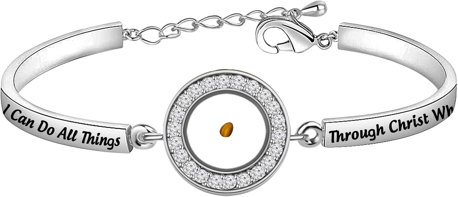 FEELMEM Mustard Seed Bracelet I Can Do All Things Through Christ Who Strengthens Me Bible Verse Bracelet Christian Faith Gift