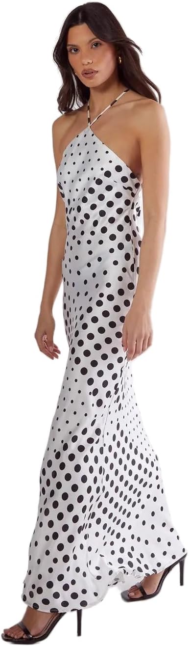 Nasty Gal Satin Polka Dot Halter Neck Cowl Back Maxi Dress