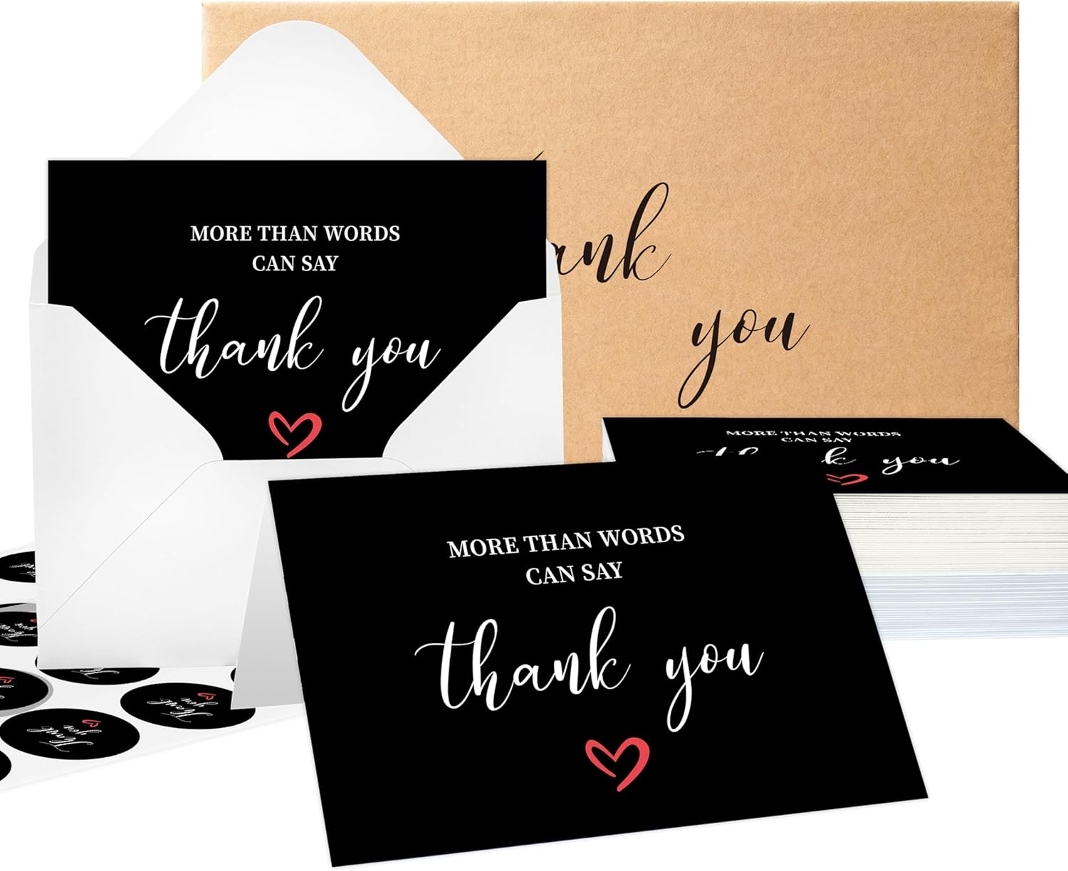 GOLDPEI 30-pack Thank You Cards with Envelopes Bulk & Matching Stickers, 4x6 Blank Thank You Notes for Baby & Bridal Shower, Weddings, Business & Graduations, Black