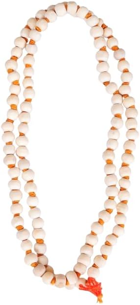 Generic Long Tulsi Kanthi White & Brown Mala Original - 3 Round Brown Wooden Mala for Neck Wearing, Regular