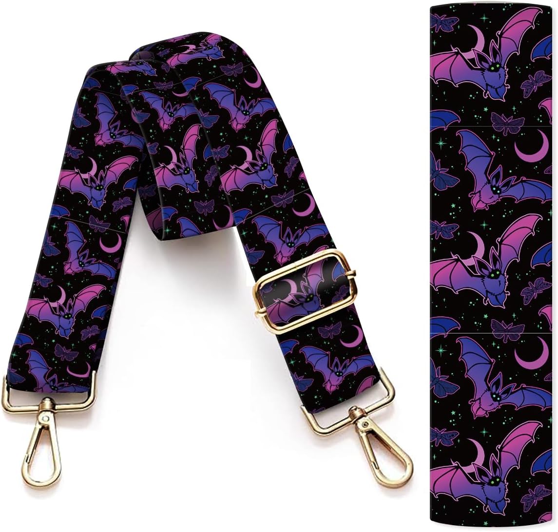 Purse Strap Replacement Crossbody, 3.8cm Wide Shoulder Strap Adjustable Replacement Belt Gold Buckle, Handbag Crossbody Bag Strap Purple Bats