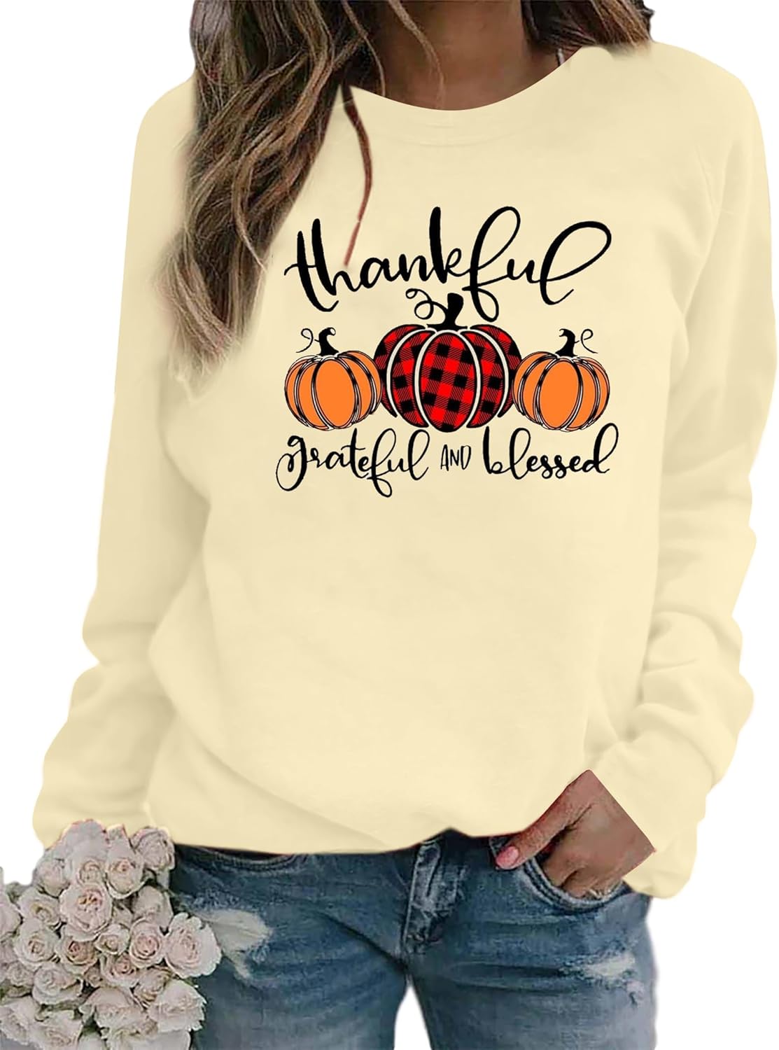 Thanksgiving Sweatshirts Women Thankful Grateful And Blessed Sweatshirt Pumpkin Pullovers Shirts Tops Blouses