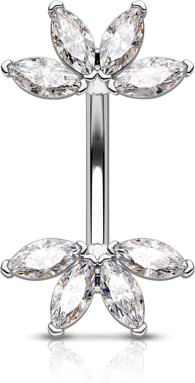 COCHARM Lotus Both Ends Belly Button Rings 14G Unique Belly Button Piercing Cute Belly Navel Piercing Jewelry