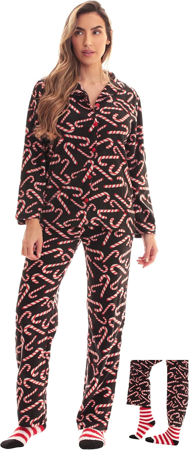 #followme Printed Microfleece Button Front PJ Pant Set with Socks