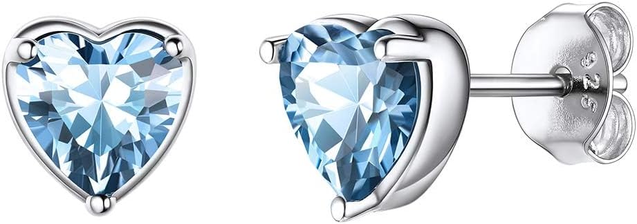925 Sterling Silver Stud Earrings for Women, Heart/Round Birthstone Earrings Birthday Jewelry for Women Wife Daughter (with Gift Box)