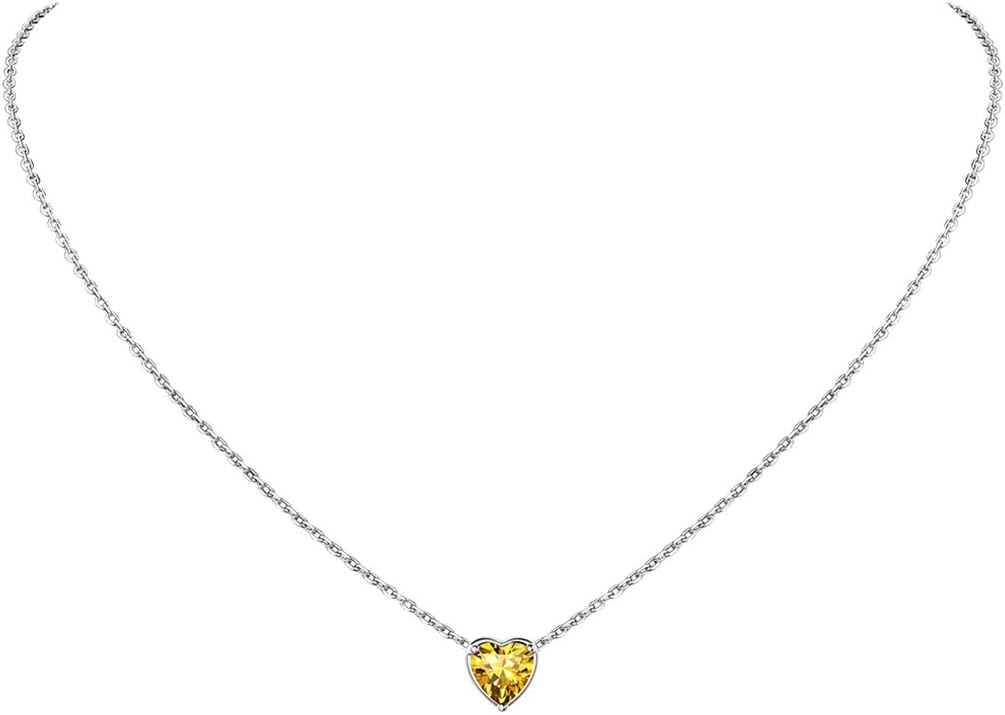925 Sterling Silver Pendant Necklaces for Women, Heart/Round Birthstone Necklaces Birthday Jewelry for Mother Wife Daughter (with Gift Box)