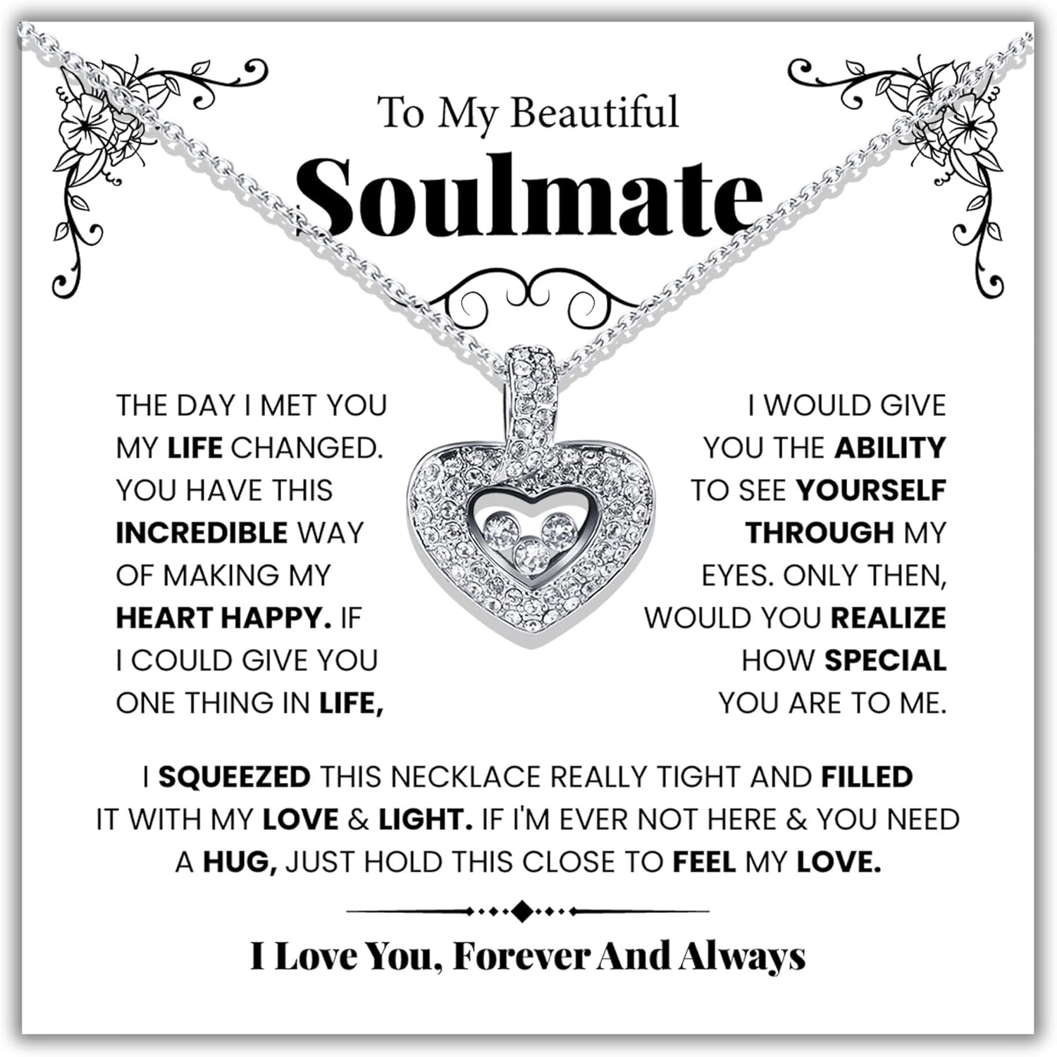 To My Soulmate Necklace - Heartfelt Birthday, Valentine's, Anniversary, Christmas Gift for Her - Romantic Christmas Gifts for Girlfriend, Wife, Soulmate Jewelry