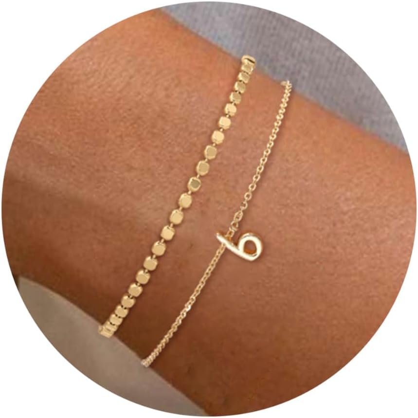 Initial Bracelets for Women, Dainty 14K Gold Plated Layered Letter Bracelet, Trendy Charm Stackable Jewelry Valentines Day Gift for Her