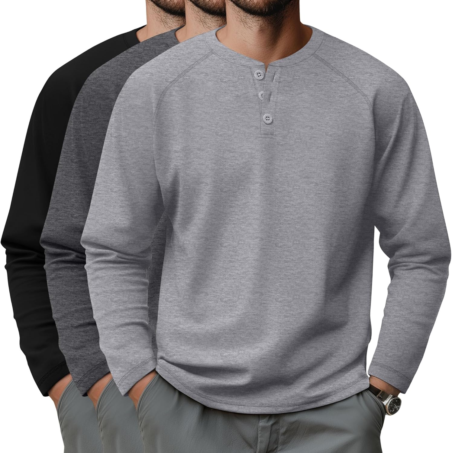 Riyiper 3 Pack Men's Big and Tall Henley Shirts Long Sleeve L-5XL Raglan Loose Casual Stretchy Tops Fall Basic Tee