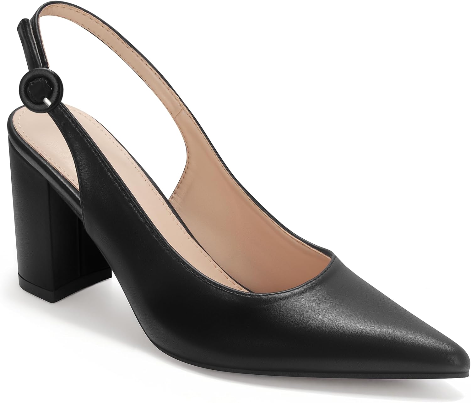 Women's Slingback Close Pointed Toe Block Heels Pumps Office Chunky Heel Slip On Work Business Dress Shoes