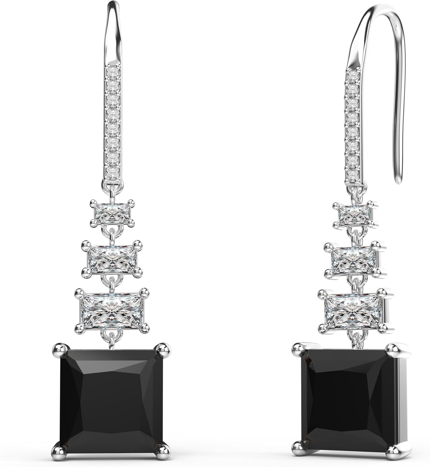 18K White Gold Plated Sterling Silver Square Princess Cut Cubic Zirconia Drop Dangle Earrings for Women Hypoallergenic Statement Earrings Gifts for Women Mom