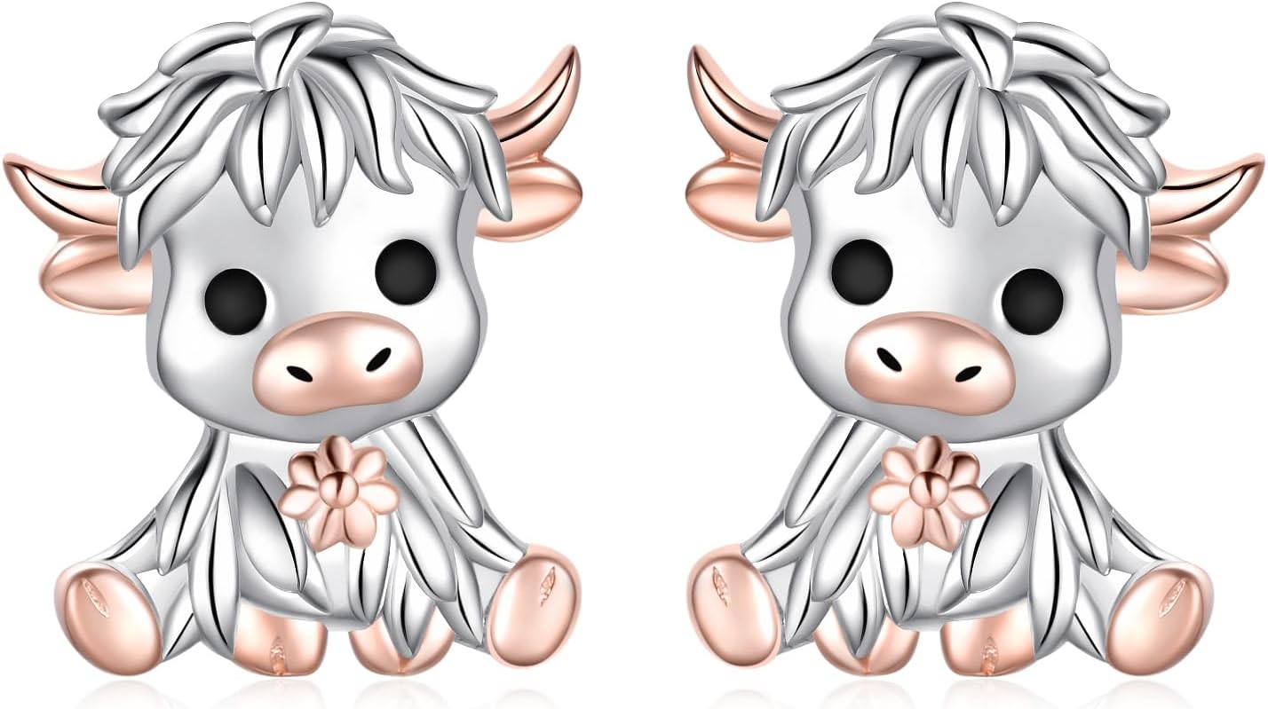 925 Sterling Silver Animal Earrings Hypoallergenic Highland Cow Horse Guinea Pig Otter Monkey Giraffe Bunny Stud Earrings for Women Jewelry Gifts