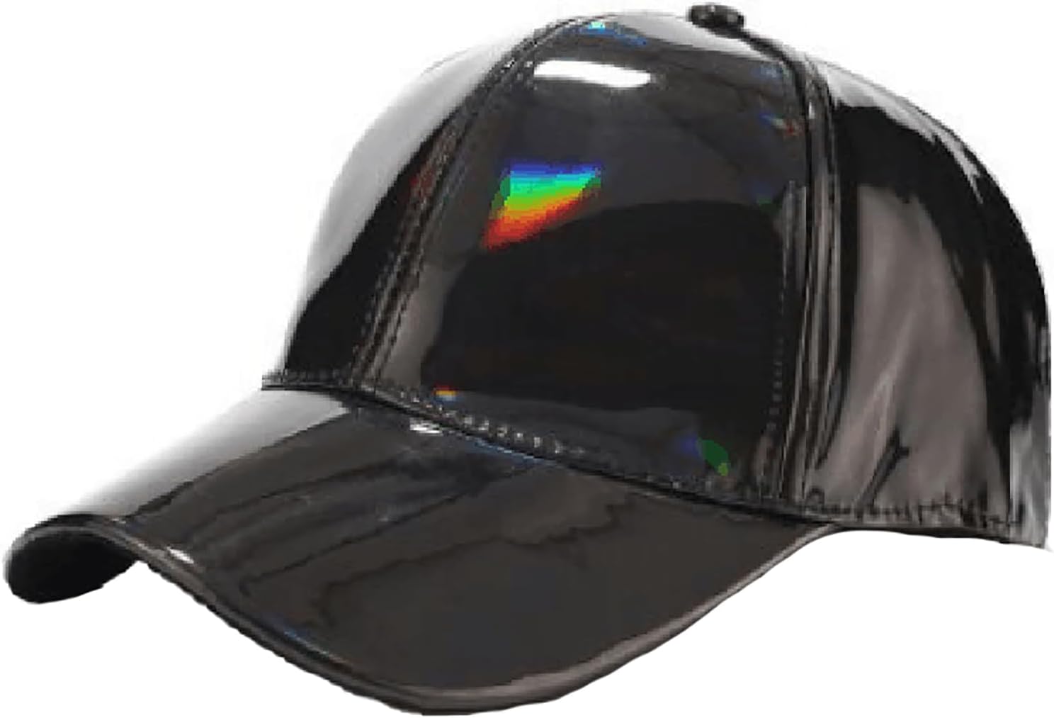 CORIRESHA Unisex Shiny Metallic Leather Baseball Cap Adjustable Rainbow Reflective Hip Hop Hat