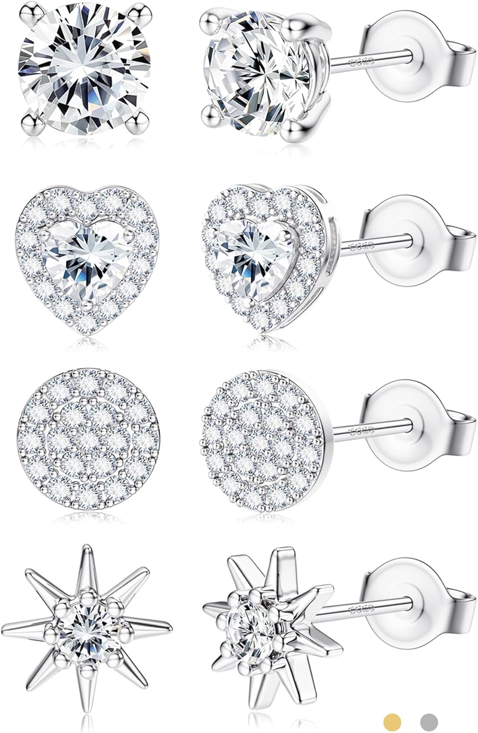 SAILIMUE Hypoallergenic Sterling Silver Stud Earrings for Women Men Brilliant Heart Knot Round Cubic Zirconia Earring Studs for Sensitive Ears Gold Silver Tone