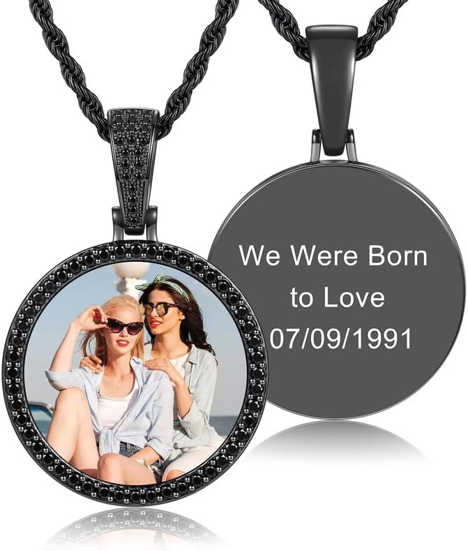 YIMERAIRE 18K Gold Plated Circle Picture Necklace Engraved Dog Tag Text Circle Chain Picture Necklace Personalized Photo Pendant With Rope Chain For Men Women