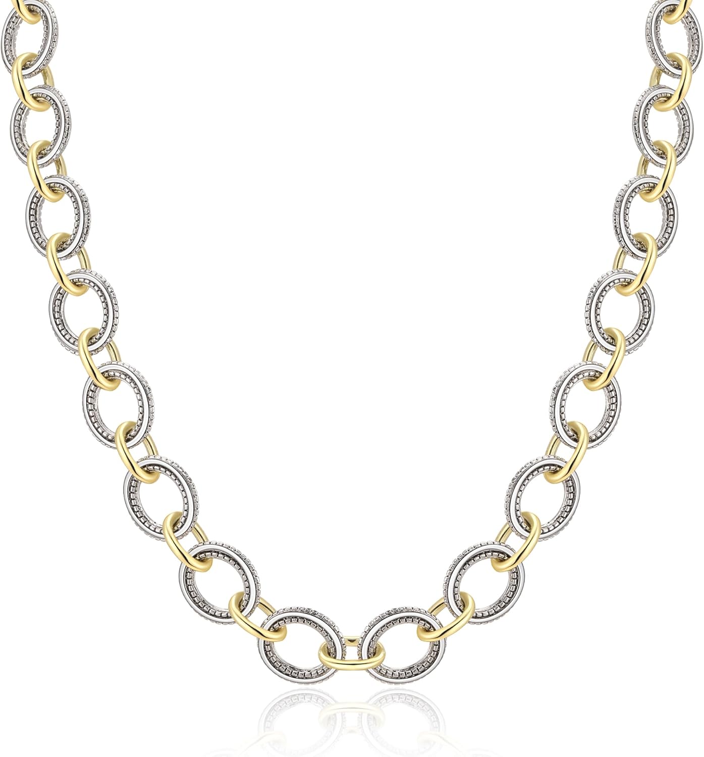 Wire Necklaces for Women, 2 Tone Link Chain Necklaces Circles Adjustable Necklaces Costume Jewelry for Women Gifts