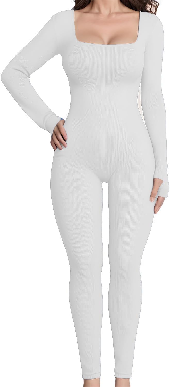 Women Workout Seamless Jumpsuit Yoga Ribbed One Piece Long Sleeve Leggings Romper