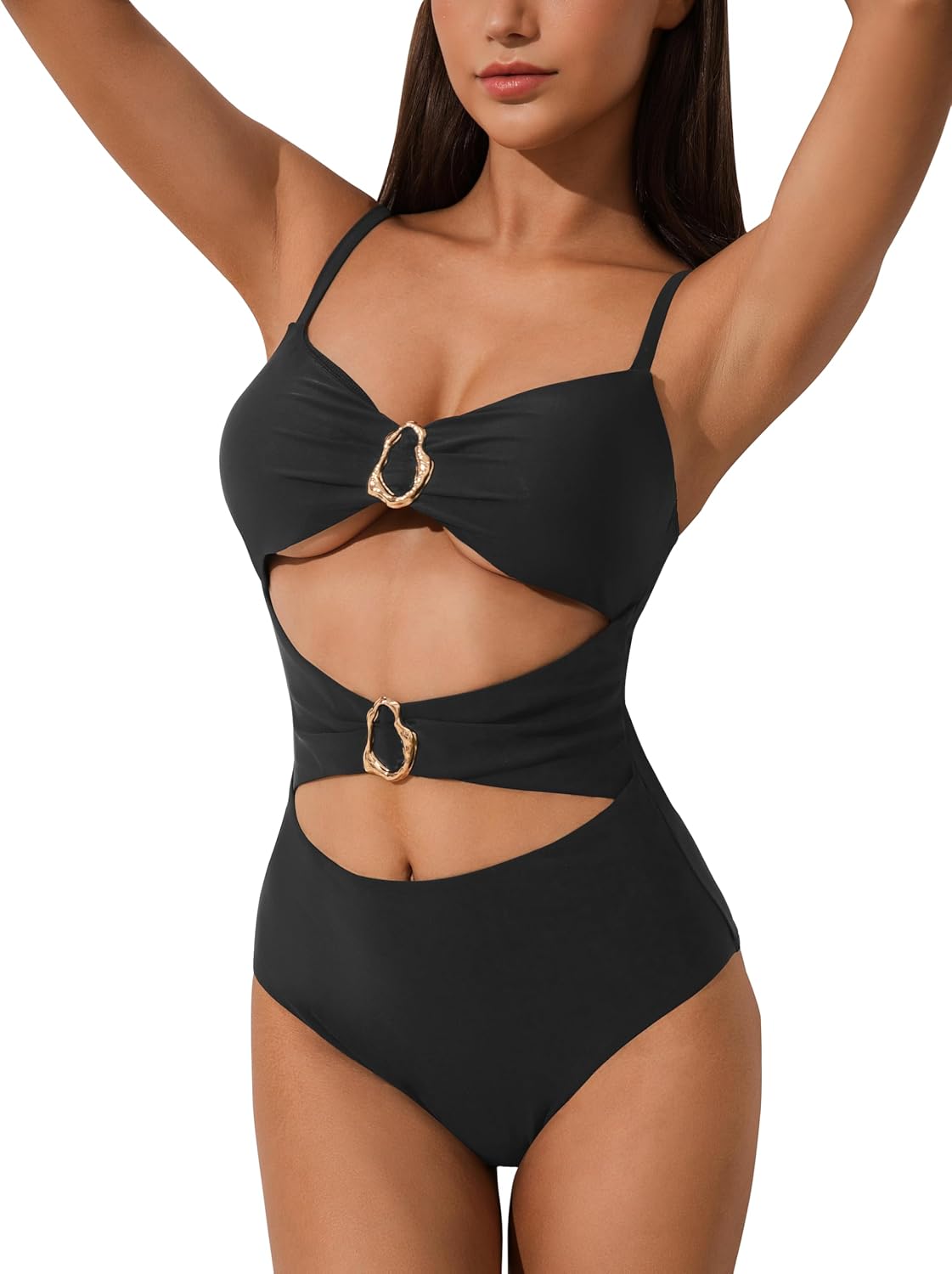 Luna & Sun Women Monokini Swimwear Metal Ring Detail Cut Out One Piece Bathing Suit Beachwear Swimsuit
