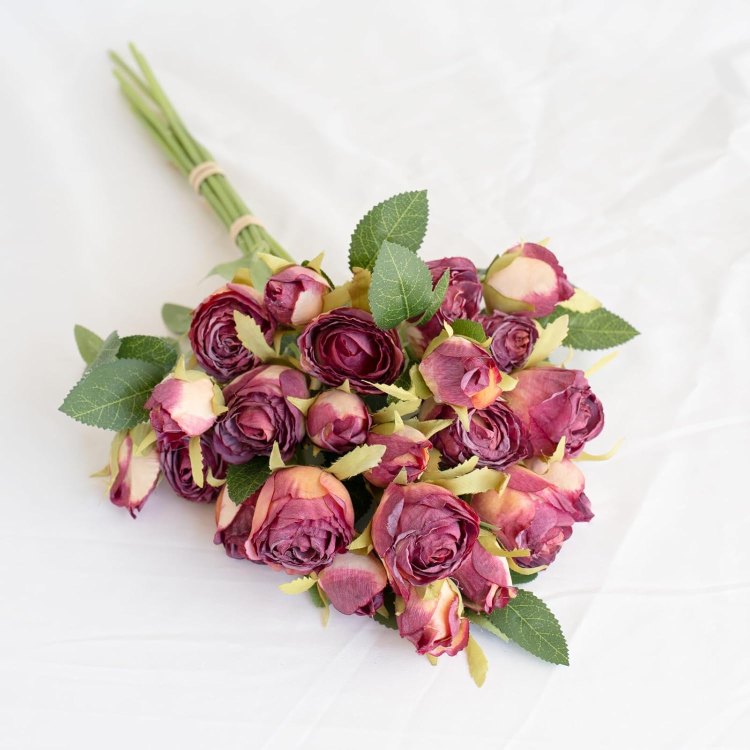 12pcs 24 Heads 13.7Iin Artificial Vintage Roses Fake Silk Rose Flowers with Long Stem for DIY Bouquets Wedding Centerpiece Party Home Kitchen Decoration (Fuchsia)