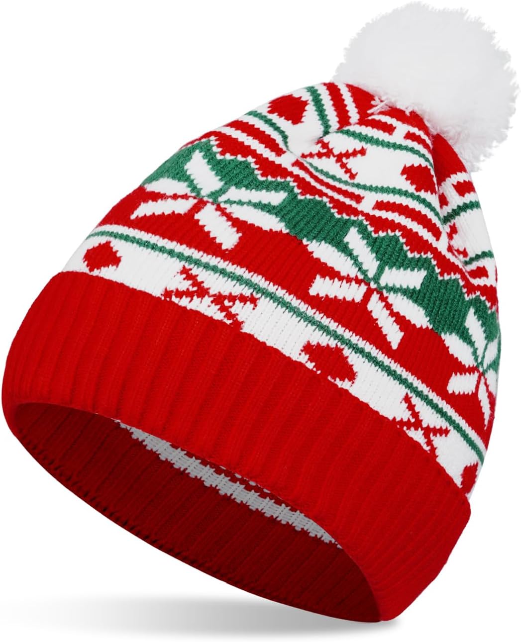 Christmas Knitted Hat with Pom Pom Red Beanie Christmas Hat Winter Cap for Women Men Xmas Holiday Party Supplies