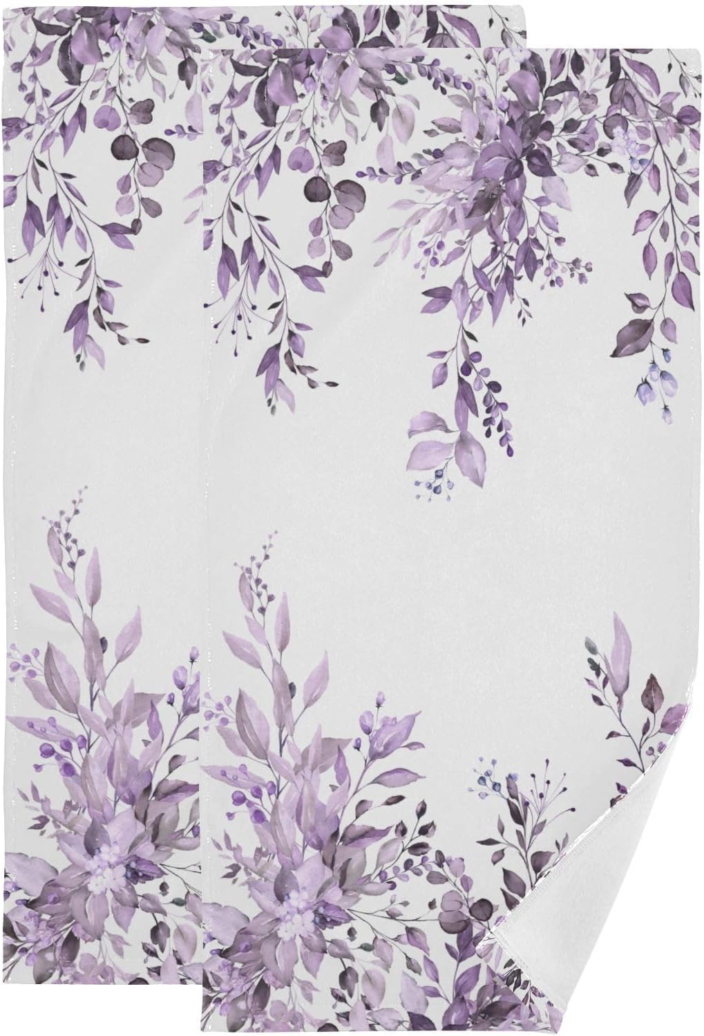 - Soft and Absorbent: The purple white leave plant hand towels for bathroom are single side printing. The printing side is made of microfiber material, super soft, lightweight and quick drying. White terry cloth back with highly absorbent