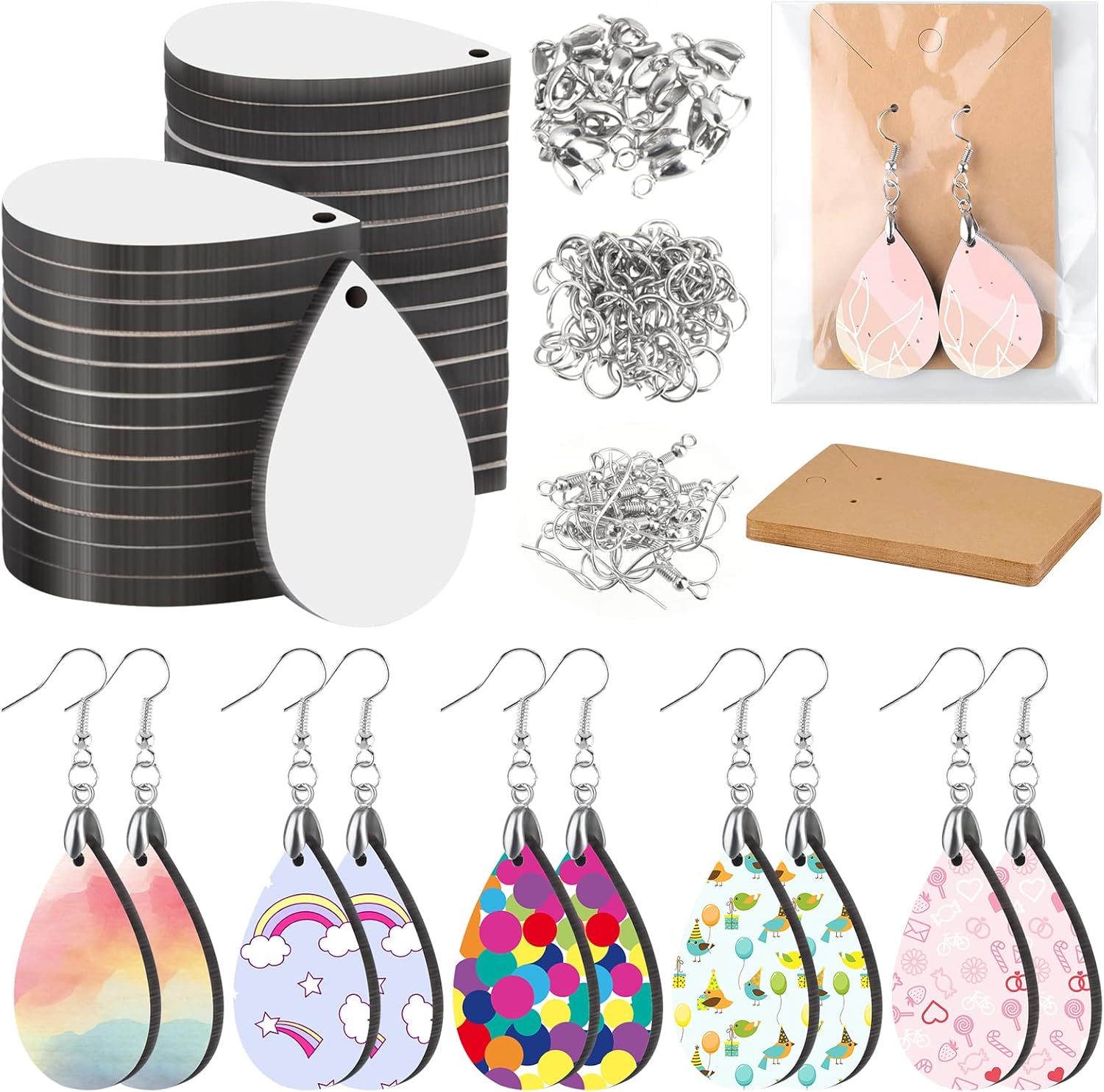 FEPITO 30pcs Sublimation Blank Earrings Kit with Hooks, Rings, Buckles, Cards & Bags for DIY Jewelry Making