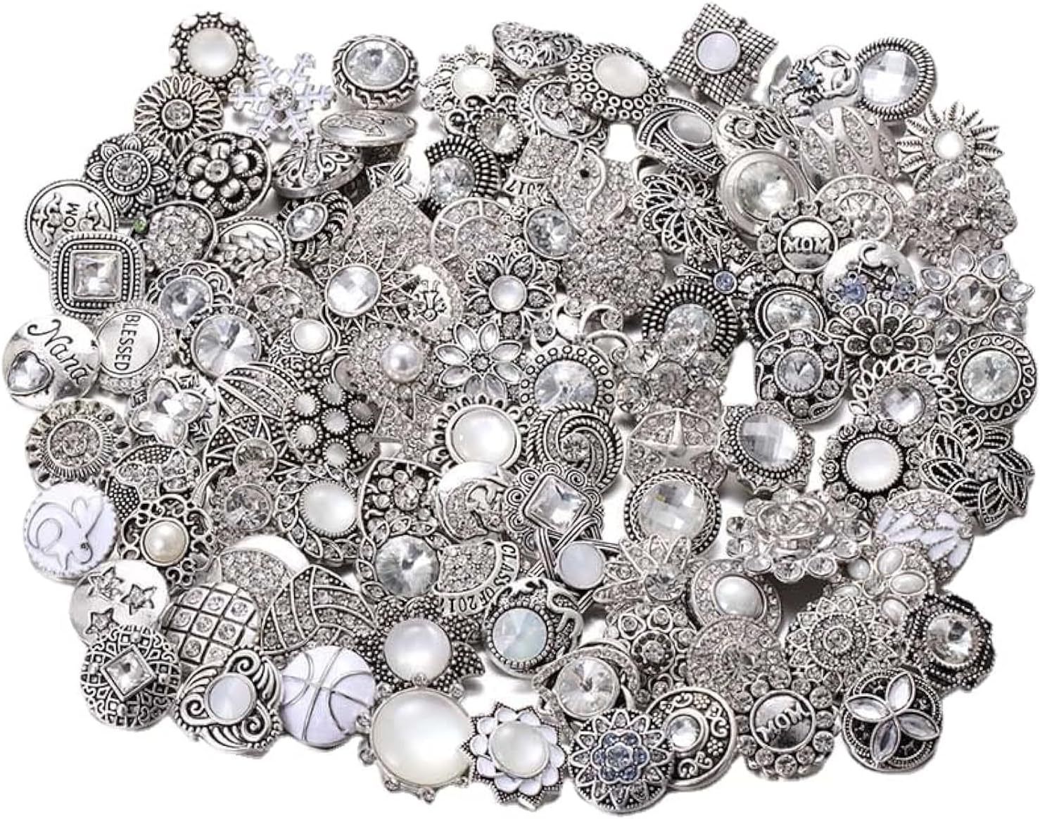 10PCs Mixed Style Rhinestones Snaps Jewelry Charms Buttons 18/20mm for Interchangeable Snaps Jewelry Making Women DIY Button Bracelets Necklaces Rings Brooch Accessories (White)
