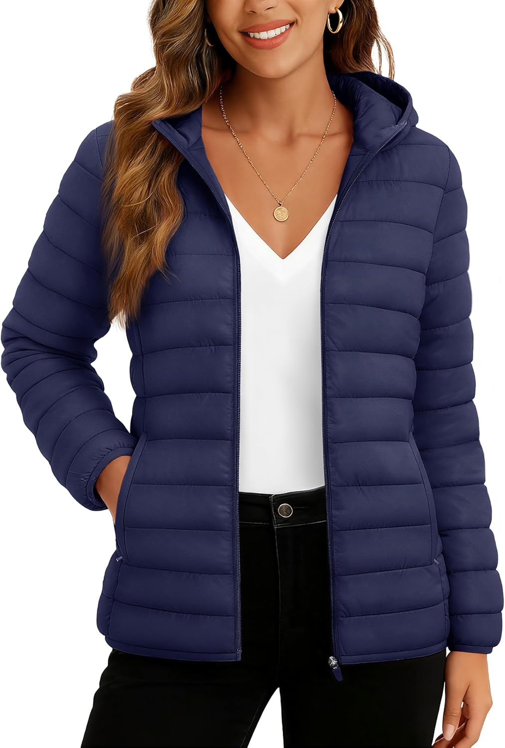 TACVASEN Women's Lightweight Puffer Jacket with Hood Pockets Quilted Padded Full-zip Water-Resistant Winter Coat