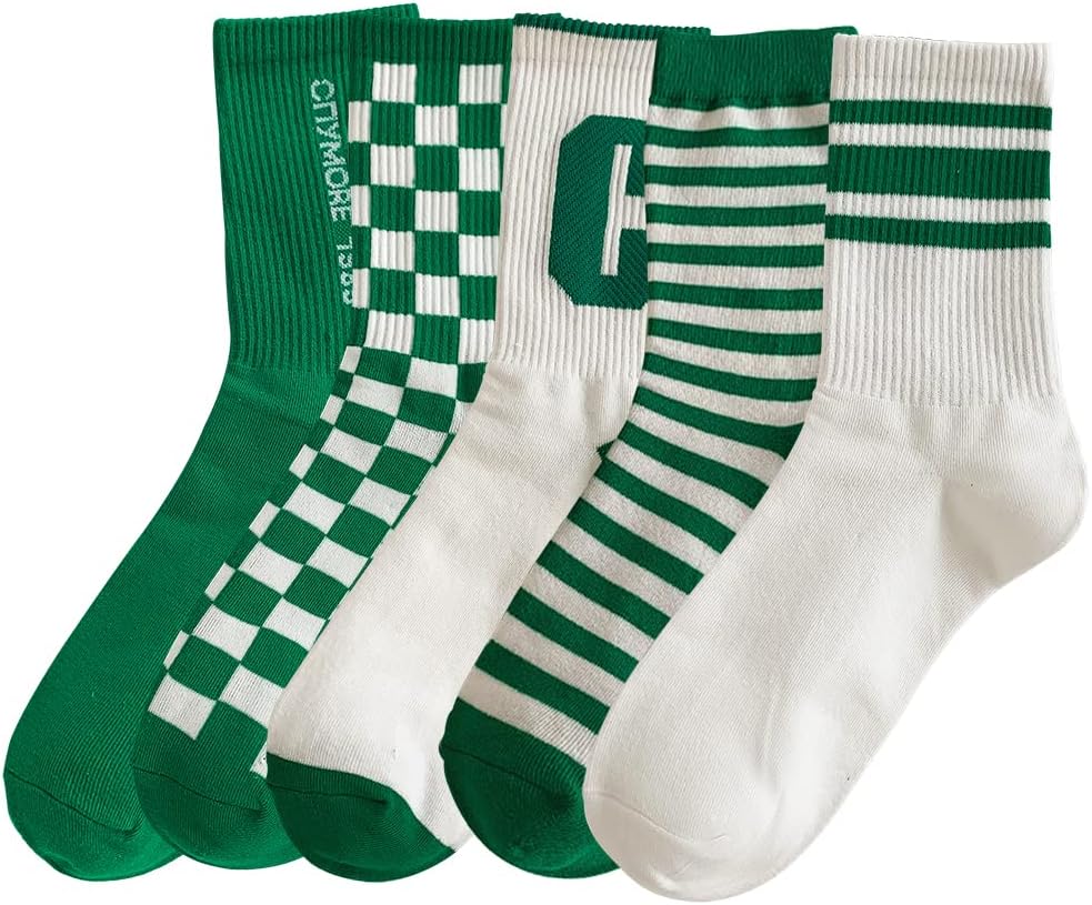 5 Pairs Cute Big C Letter Crew Socks Sports,Casual,Striped for Women Socks