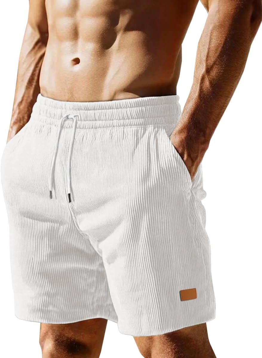 Sailwind Men's Casual 5" Shorts Corduroy Elastic Waist Drawstring Summer Beach Short