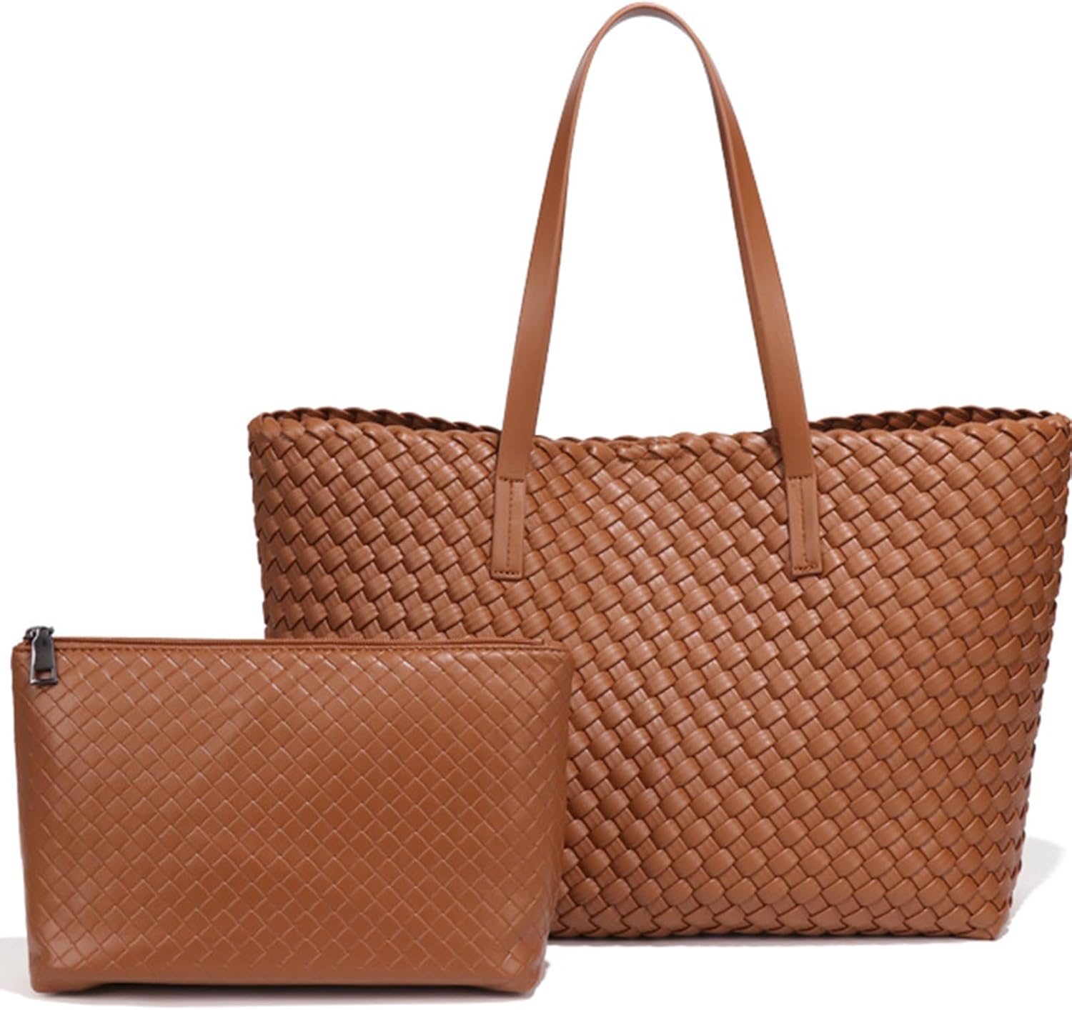 Large Capacity Shoulder Handbag Woven Leather Tote Bag with Matching Pouch Travel Lightweight