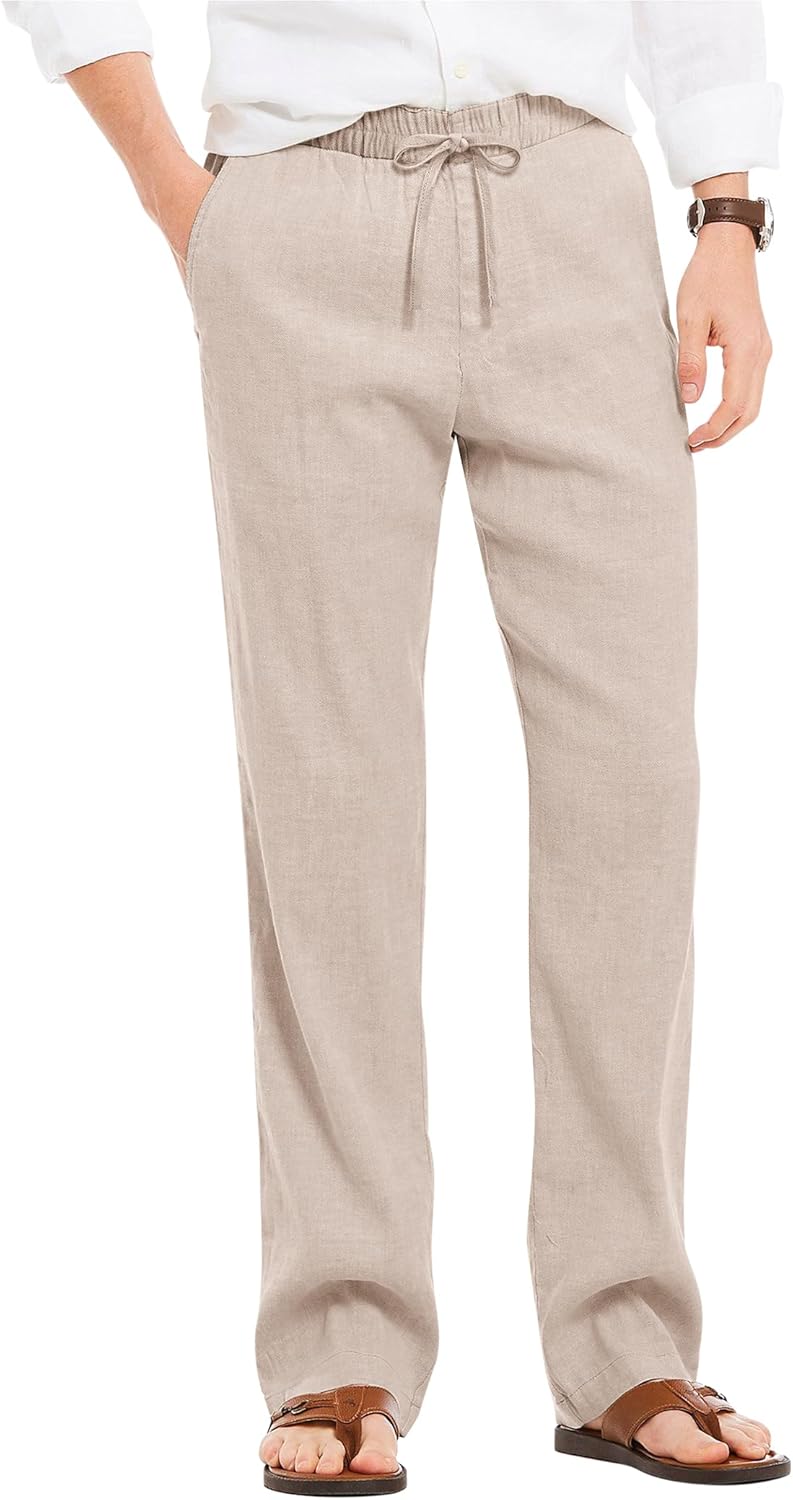 COOFANDY Men's Casual Linen Summer Beach Pants Lightweight Drawstring Elastic Waist Yoga Trousers