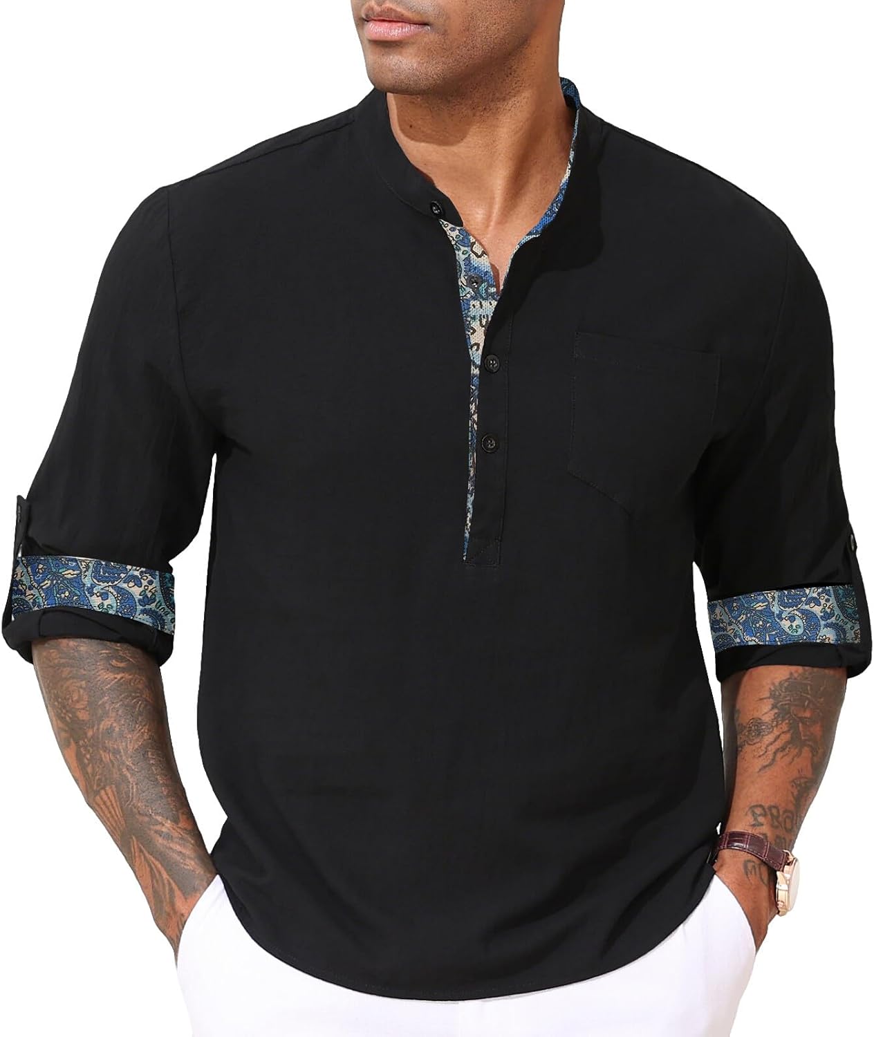 KUYIGO Mens Cotton Long Sleeve Henley Shirts Casual Beach Shirt Button Down T-Shirt