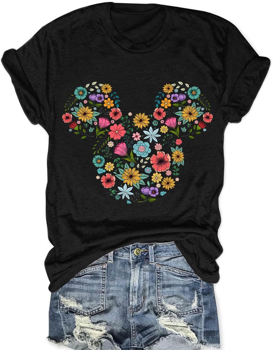 Women Magic Kingdom Castle Shirt Vintage Flower T Shirt Funny Boho Graphic Tees Short Sleeve Summer Tops