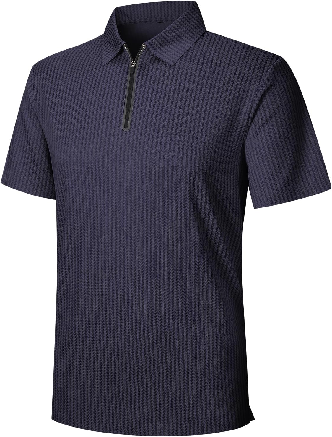 Ecosunny Men's Polo Shirts Short Sleeve Zipper Textured Knit Casual Polos T-Shirt Regular Fit Vacation Golf Shirt