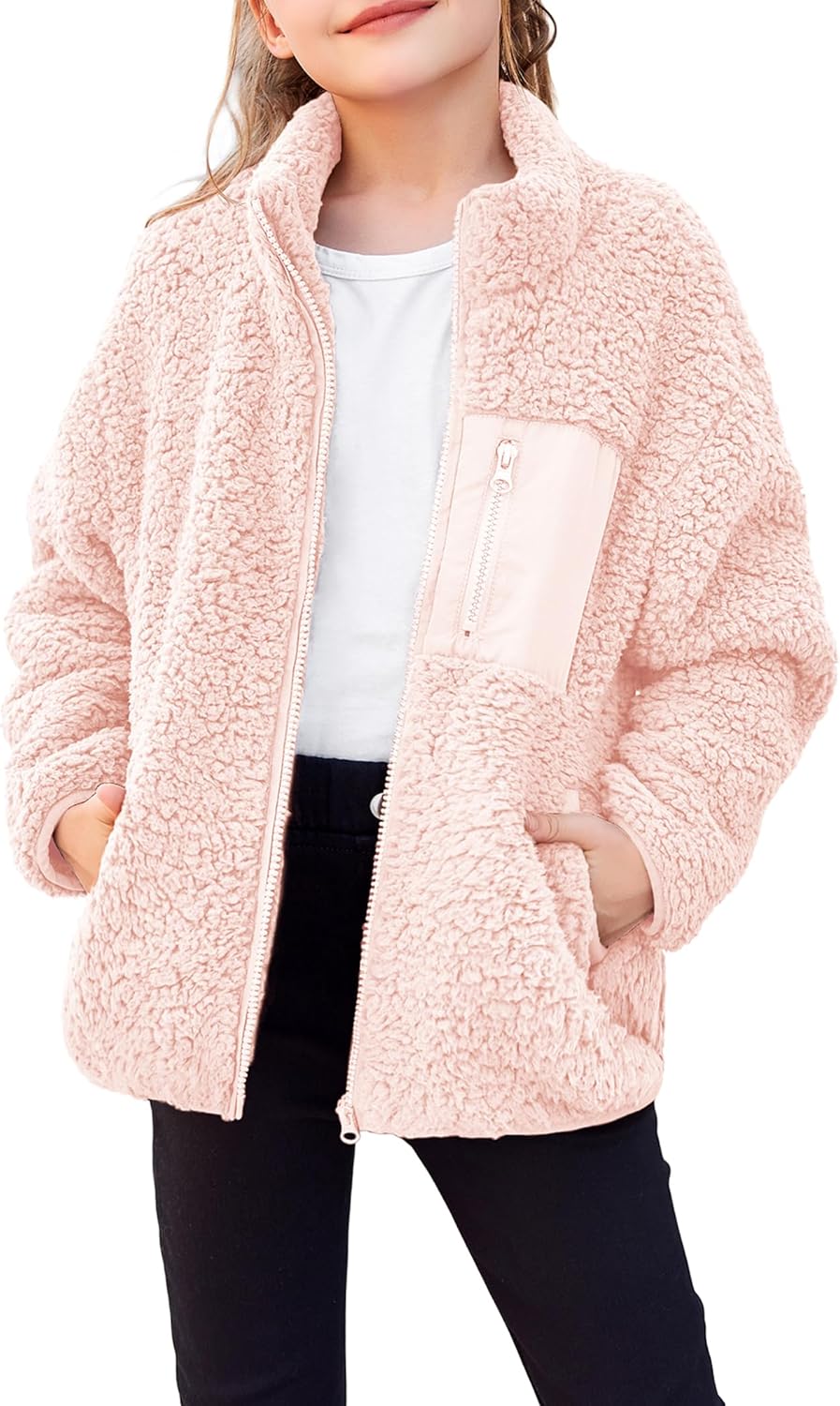 Arshiner Girls Fleece Jacket Sherpa Fall Winter Full Zip Fuzzy Coat Outwear with Pockets