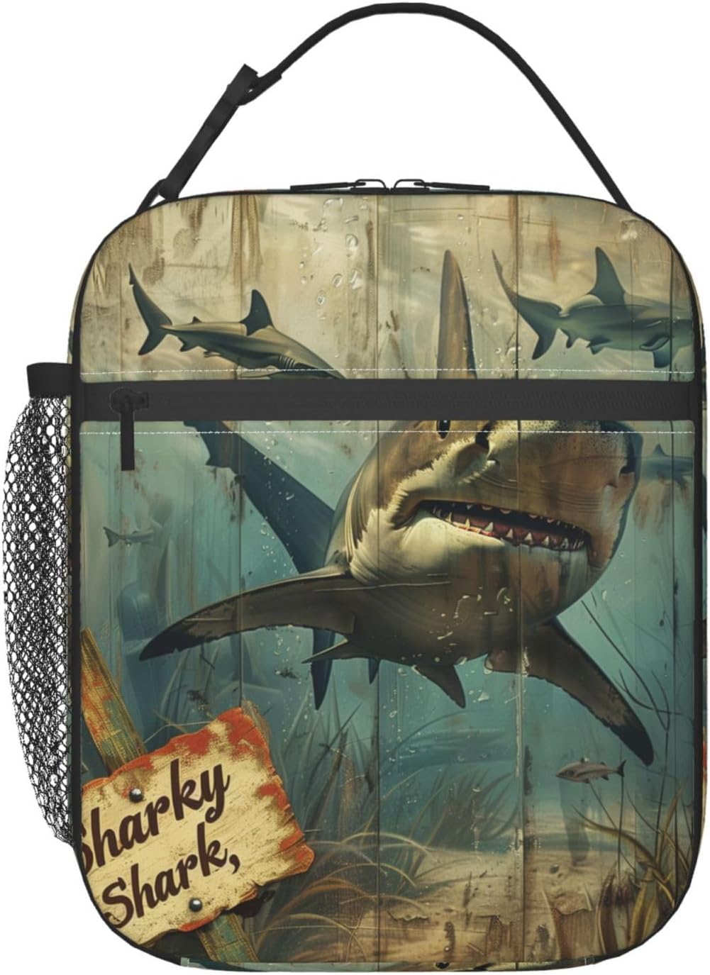 Vintage Shark Insulated Lunch Box for Women Men Retro Ocean Design Lunch Bag for Work,Picnic,Travel,Hiking,Beach or Fishing Polyester Nature Lovers Lunch Box