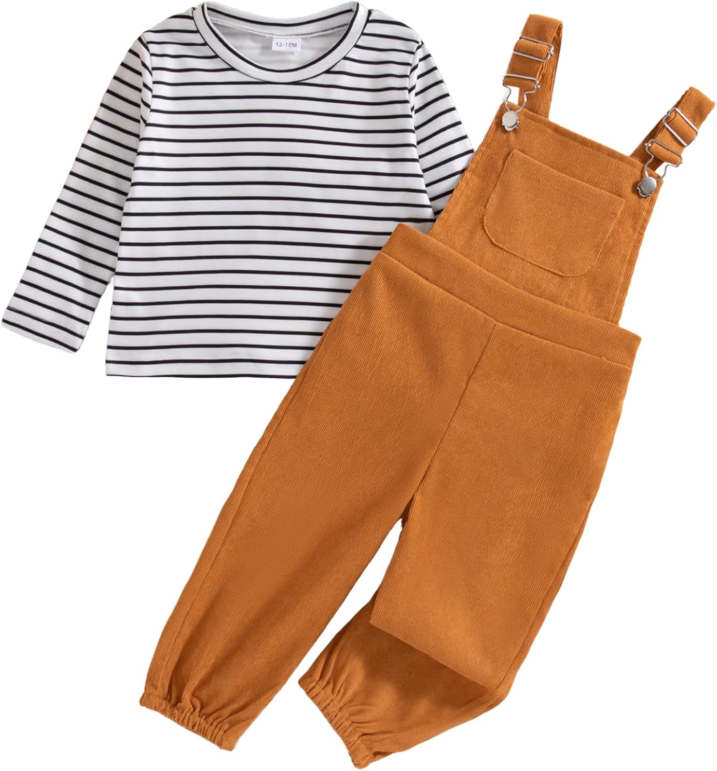 Mioglrie Toddler Baby Girl Clothes 12 18 24 Months 2T 3T 4T 2Pcs Girl Outfits Adjustable Overall Set Cute Jumpsuit