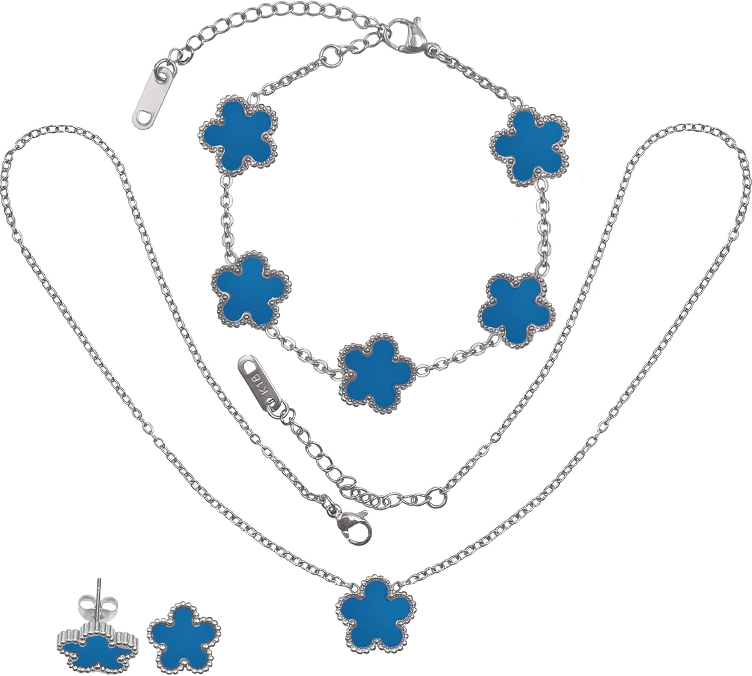 18K Gold Five Leaf Clover Jewelry Set - Complete Necklace Bracelet Earrings Gift Set for Women