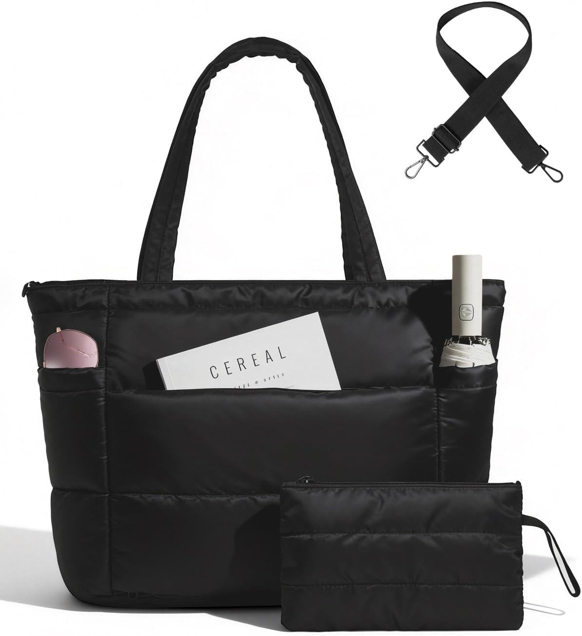 Moyad Puffy Tote Bag for Women with Zipper, Lightweight Quilted Bags Shoulder Handbag for Work, Travel, Gym, Nurse, Teacher